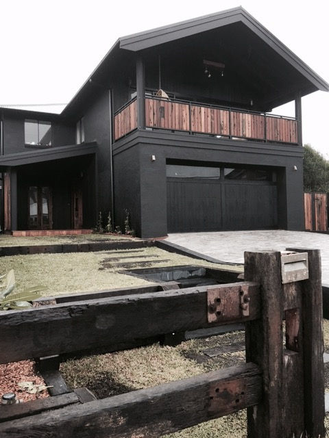 The building takes form of two elongated volumes following the natural contour of the land. In elevation the elongated volumes frame cubes at either end of the building. The Entry of the house is between these two volumes via a double storey entry area.